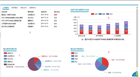 督办领导:A区域显示我的交办、超期督办;BCD 如下图所示,权限范围为全单位;