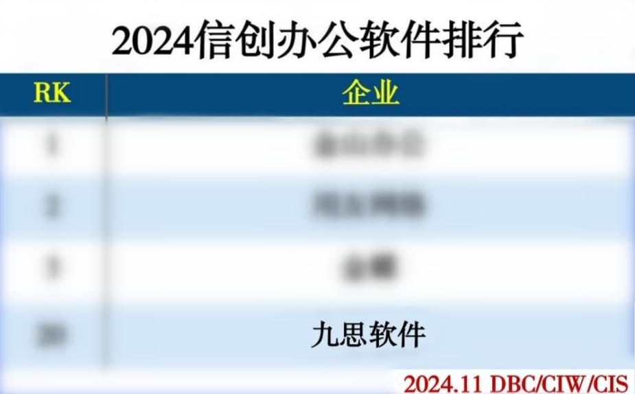 近日,九思软件入选由《互联网周刊》联合德本咨询与中国社会科学院信息化研究中心发布的“2024信创办公软件排行 ”榜单。