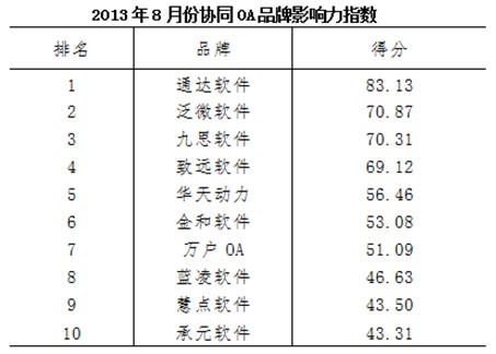 在最新发布的8月份协同OA品牌影响力排名中,九思软件排名第三,影响力指数为70 31,领先于老牌OA. . .